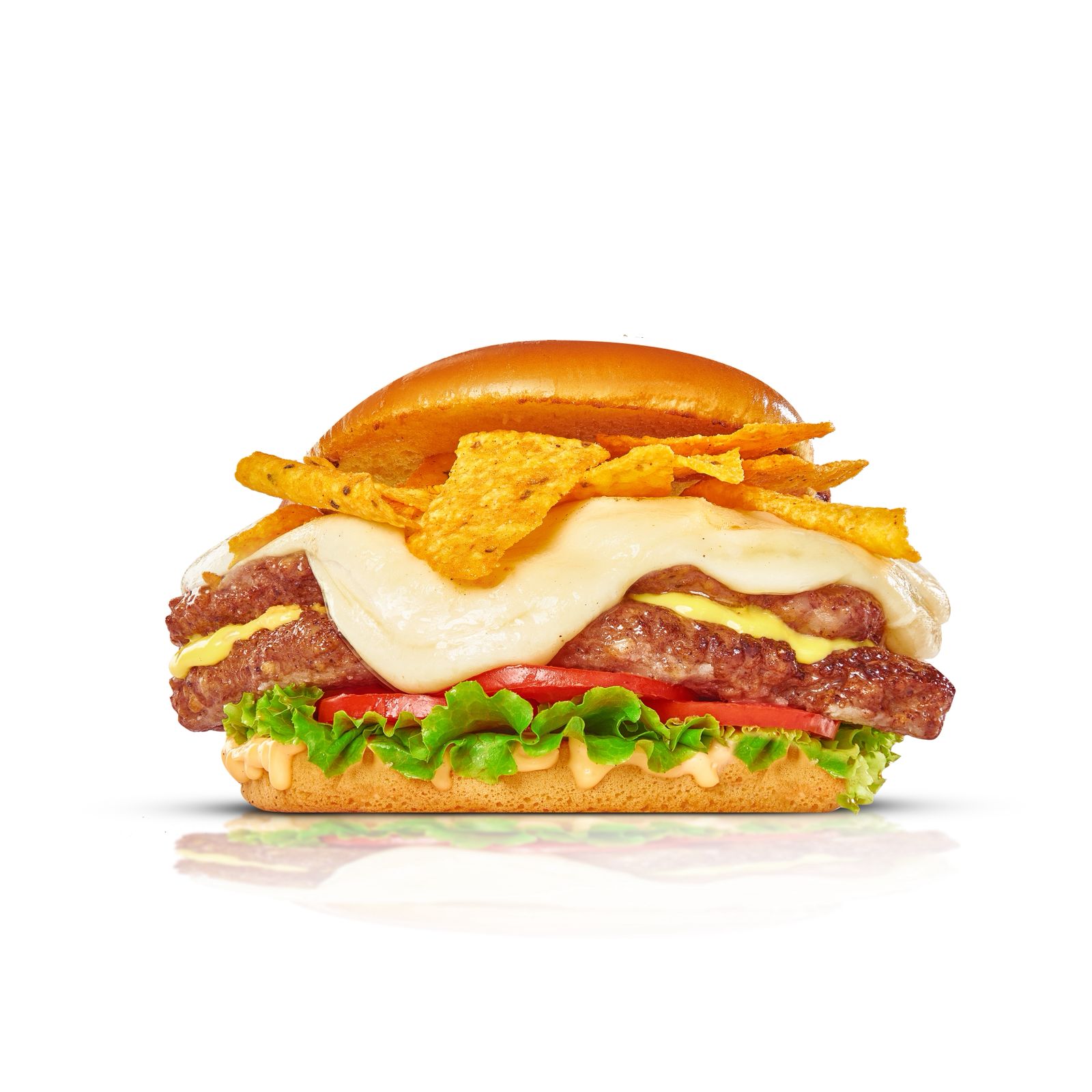 Berioche bun - smash burger - mozzarella - natchos - cheddar sauce - tasty sauce - lettuce-tomato